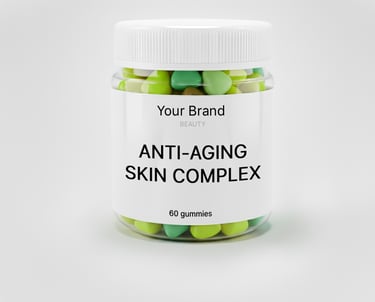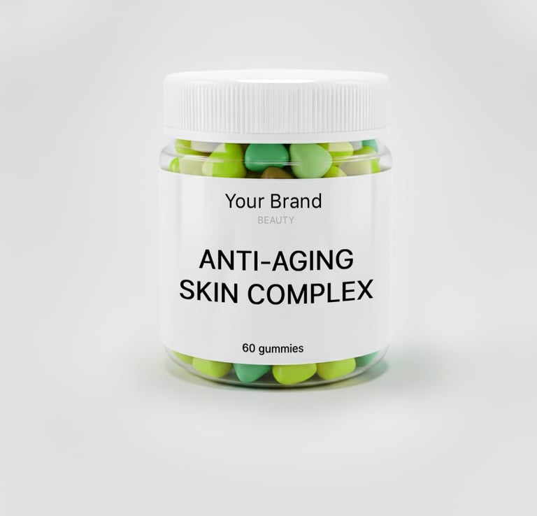 Multi-pathway anti-aging formula targeting oxidative stress, hydration, and cellular energy. Astaxanthin provides unmatched antioxidant protection while CoQ10 supports mitochondrial function in skin cells. Hyaluronic acid maintains moisture, vitamin C drives collagen production, Vitamin E protects cell membranes. For the customer who wants the most advanced, science-backed anti-aging support available.