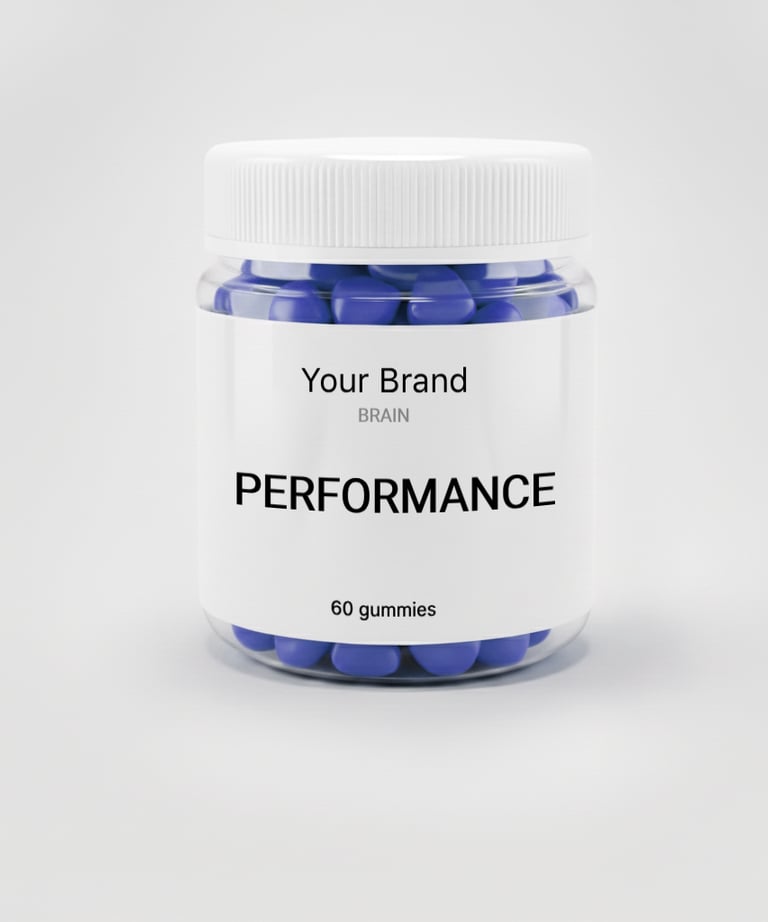 Private label nootropic gummies command premium pricing, attract younger demographics that traditional supplements miss, and open channels - from gaming shops to pharmacy shelves - where experience matters as much as efficacy.